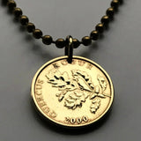 2015 Croatia 5 Lipa coin pendant Croatian red oak plant Hrvatska Hrvati Zagreb Split city Rijeka seaport Slavs Adriatic Sea necklace n000472