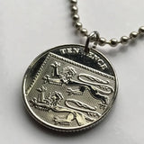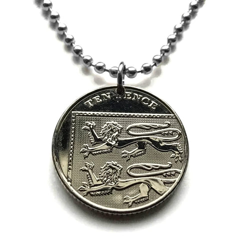 2017 England United Kingdom Great Britain 10 Pence coin pendant necklace English lions London Manchester Birmingham Sheffield Liverpool Leeds Newcastle Reading Portsmouth Norwich Essex Kent n002256