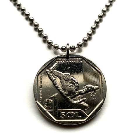 Peru coin pendant necklace Peruvian fashion jewelry mono choro de cola amarilla Yellow-tailed Woolly monkey primate Peruvian Andes Amazonas San Martin La Libertad Huánuco Loreto Lima Callao Cusco Machu Picchu Incas Nazca Moche Arequipa Trujillo Ica Chiclayo Piura Huancayo Chimbote Iquitos Tacna Juliaca Cajamarca Pucallpa Sullana Ayacucho Puno Chincha Huánuco ceviche llama alpaca