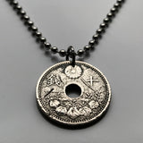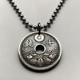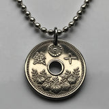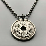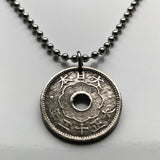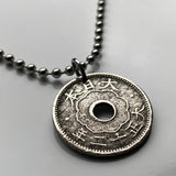 1920-1932 Japan Nippon Nihon 10 Sen coin pendant Yata sacred mirror floral blossom Tokyo Kawasaki Yokohama Sapporo Nagoya Kobe Osaka Okinawa Samurai symbol Judo Chrysanthemum Chiba Sakai paulownia Yata no Kagami Shibuya Kyoto Kodokan Emblem Sendai n000064