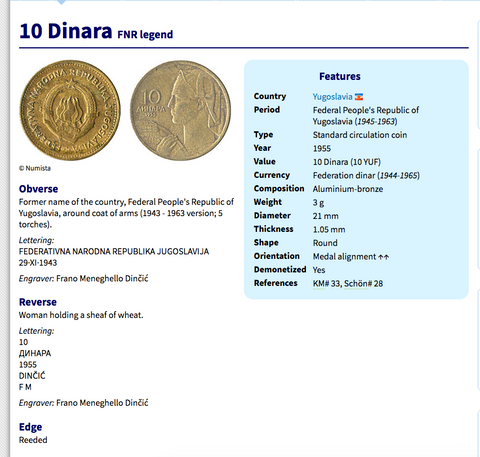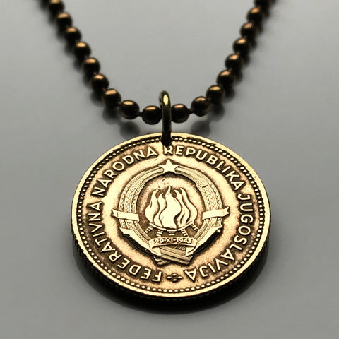 1955 Yugoslavia 10 Dinara coin pendant socialist republic Serbia Croatia Macedonia Slovenia Montenegro Bosnia & Herzegovina Kosovo Belgrade Sarajevo Zagreb Skopje Ljubljana Vojvodina Podgorica Split Sušak South Slavic Balkans n000172