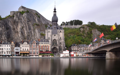 Belgium Touristic token coin pendant necklace Belgian jewelry Notre-Dame de Dinant cathedral Meuse river Ardennes Namur Wallonia Anseremme Bouvignes-sur-Meuse Drehance Falmagne Falmignoul Foy-Notre-Dame Furfooz Lisogne Sorinnes Thynes Mechelen