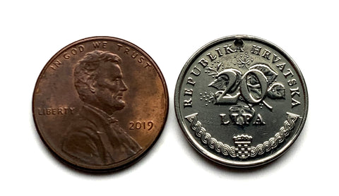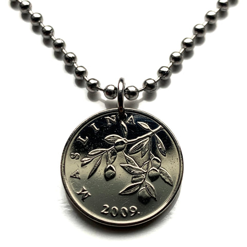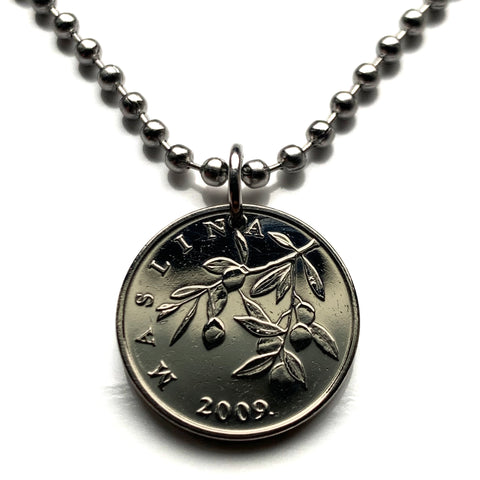 Croatia Hrvatska 20 Lipa coin pendant necklace olive branch Sahovnica chequy checkerboard Zagreb Split Rijeka Osijek Zadar Pula Slavonski Brod Dubrovnik Karlovac Varazdin Sibenik Dalmatia Slavonia Istria Primorje Gorski Kotar Rovinj Yugoslavia n000143