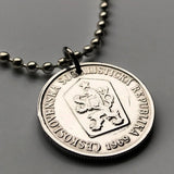 1962 Czechoslovakia 10 Haleru coin pendant socialist communist state Czech lion Slovak shield Prague Cesky Krumlov Bratislava Bohemia Moravia Charles Bridge Brno Cesky Krumlov Kutná Hora Ostrava Slovakia n002451