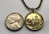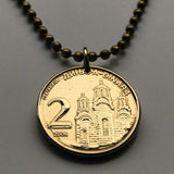 2006 Serbia Srbija 2 Dinara coin pendant Serbian cross double-headed eagle crown Gračanica monastery Belgrade Novi Sad Niš Kragujevac Subotica Pančevo Novi Pazar Čačak Kruševac Zrenjanin Kraljevo Yugoslavia Nemanjić dynasty Golubac Palilula n002772