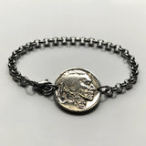 USA 5 Cent Buffalo Indian Head nickel coin rolo link bracelet native American bison Chief Iron Tail New York Washington Nebraska b000085