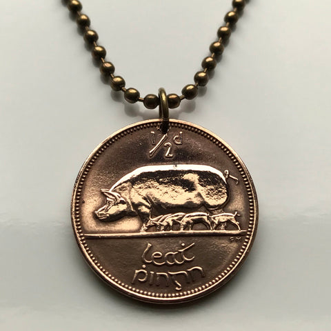Ireland Éire 1/2 Pingin coin pendant pig sow Irish harp Dublin Waterford Drogheda Connacht Leinster Swords Gaels Guinness n000286
