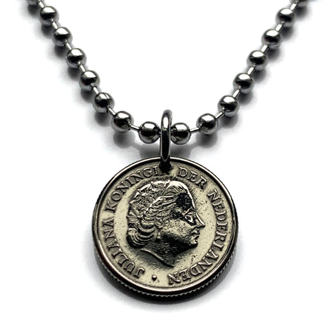 Netherlands Nederland coin pendant necklace jewelry Dutch Queen Juliana Holland Amsterdam Utrecht Rotterdam The Hague Eindhoven Groningen Tilburg Leiden Nederlanden Almere Stad Breda Ajax Nijmegen Delft Gouda Haarlem Low Countries Dam Square