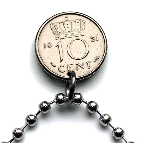 1951 Netherlands 10 Cents coin pendant Dutch Queen Juliana Holland Amsterdam Utrecht Rotterdam Hague Eindhoven Groningen Tilburg Leiden Nederlanden Groningen Almere Stad Breda Nijmegen Gouda n003908