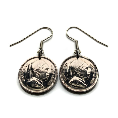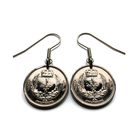 1952 Libya 1 Piastre coin earrings Libyan crown Tamazight Benghazi Arabic Islamic Misrata Cyrenaica white crescent moon star e000684
