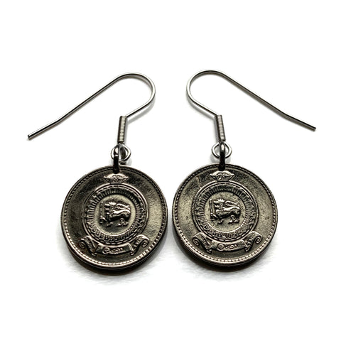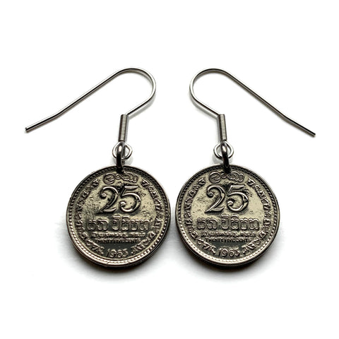 1963 Ceylon Sri Lanka 25 Cent coin earrings golden lion kastane sword Blue Lotus Sinha flag Sinhalese Colombo Kaduwela Maharagama Kesbewa Dehiwala Lavinia Moratuwa Negombo Kotte Kalmunai Kandy Galle Buddhism Sigiriya Lion Rock fortress e000671