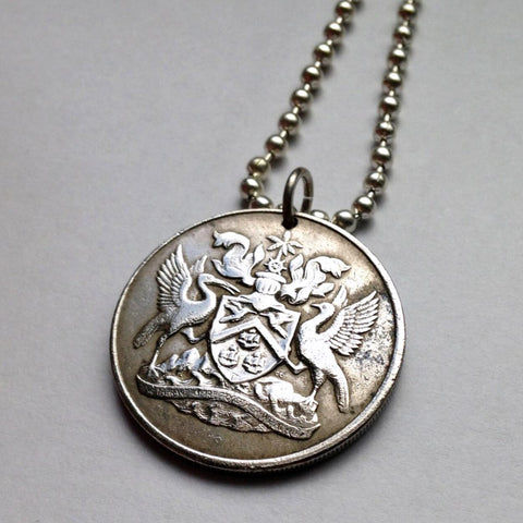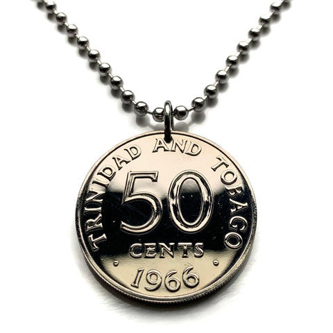 1966 Trinidad & Tobago 50 Cents coin pendant Scarlet Ibis Cocrico Hummingbirds Port of Spain Point Fortin Diego Martin Soca Rapso n001001