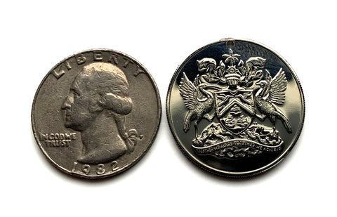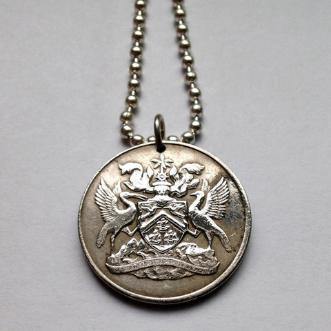 Trinidad and Tobago coin pendant necklace fashion jewelry Scarlet Ibis Cocrico birds Hummingbirds Trinity Hills Port of Spain Point Fortin Diego Martin Soca Rapso carnival Caribbean Trinidadian Chaguanas San Fernando Arima Scarborough West Indies calypso Pigeon Point beach Rapso Couva Princes Town Trinbagonian
