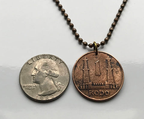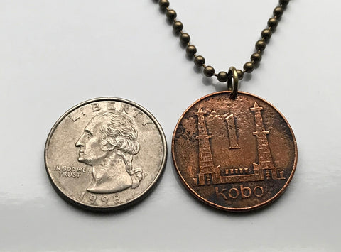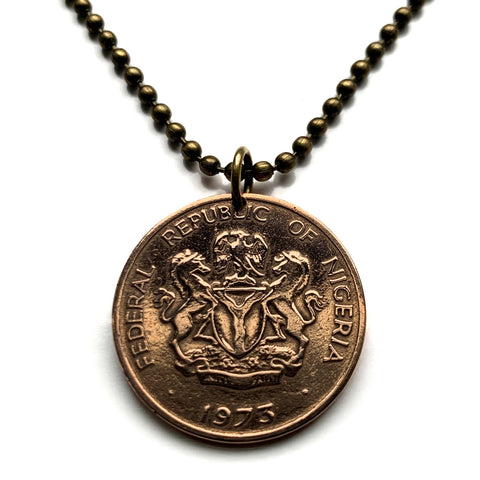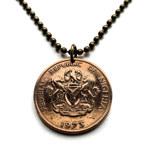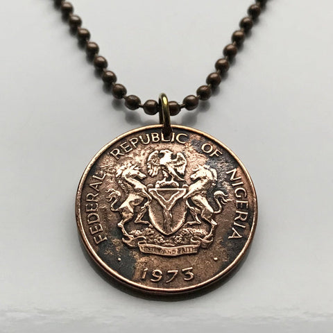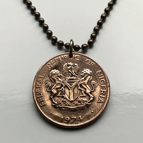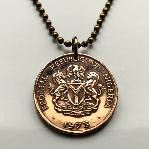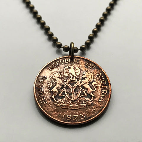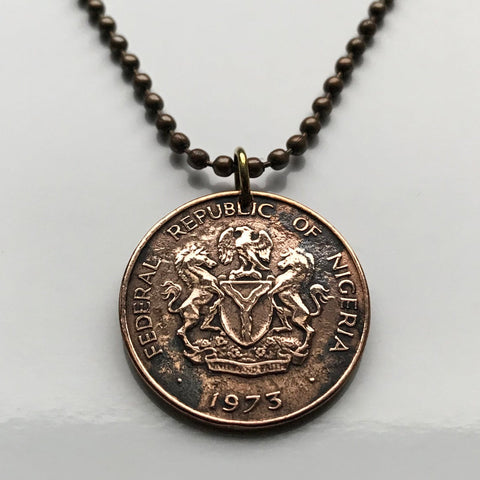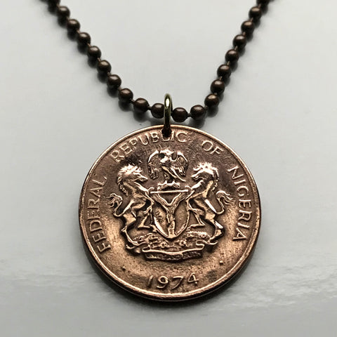 1973 Nigeria 1 Kobo coin pendant Nigerian horse eagle Abuja Lagos black shield West Africa Zuma Rock Victoria Island Harcourt Ibo n001572