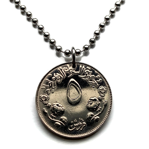1976 Sudan 5 Qirsh coin pendant secretary bird Khartoum Omdurman Nyala Nubian pyramids Meroe El-Obeid Kassala Wad Madani Gadarif Al-Fashir Bahri Kerma Kush Shendi Wau Bahri Juba Kordofan Sahel n003923