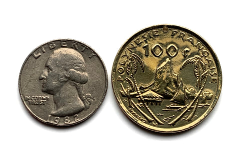 2014 French Polynesia Tahiti 100 Francs coin pendant Morea Harbour Cook's Bay Huahine South Pacific Maori tiki Papeete Maohis South Pacific Polynesian islands Windward Islands Society Islands Bora Bora Tahitian Austronesian Hei-tiki Māori legend n002929