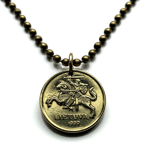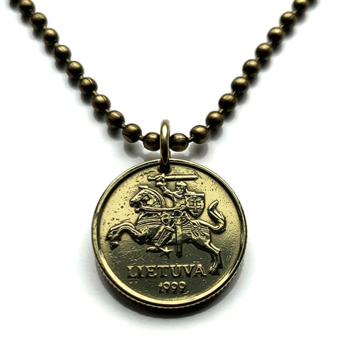 1999 Lithuania Lietuva 10 Centu coin pendant Vytis horse armored knight Vilnius medieval Lithuanian horseback armor sword Vityaz n002028