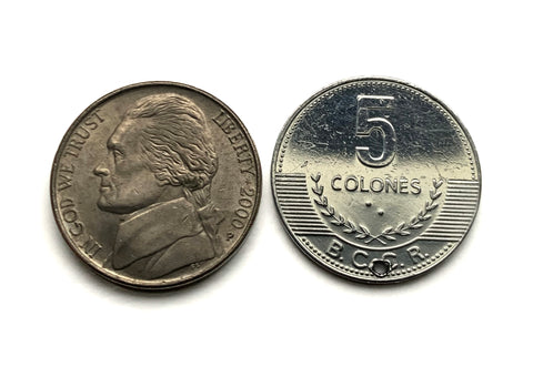 2008 Costa Rica 5 Colones coin pendant escudo Costarricense San Jose Puerto Limón Alajuela Liberia Puntarenas San Vicente Barranca ticos América Central Heredia Cinco Esquinas Desamparados Tamarindo Arenal Cartago Puntarenas Cocos Poás Nicoya n002947
