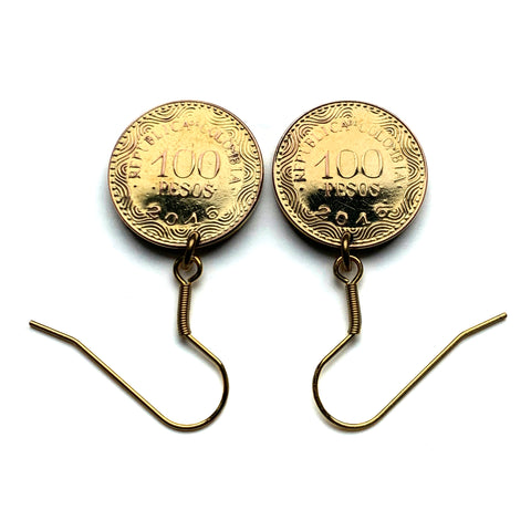 2016 Colombia 100 Pesos coin drop dangle earrings Frailejón fruta Colombiana Bogota sunflower Valle del Cauca Soledad Bello Ibagué Villavicencio e000679