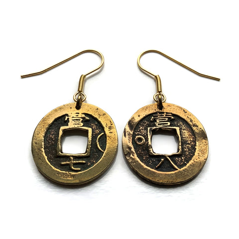 antique! 1742 Korea 1 Mun cash coin drop dangle earrings Yeopjeon Sangpyeong Tongbo Joseon Yi Dynasty Seoul Busan Incheon Daegu Daejeon Hangul Hanja Joseon Kingdom Goguryeo Baekje Silla Jeju Ho e000683