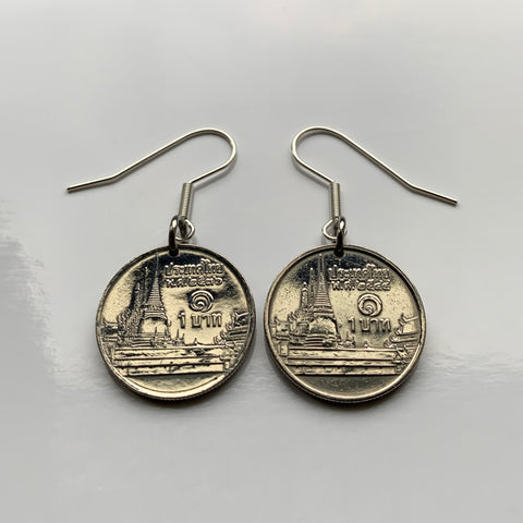 1876 Thailand Siam 1 Sik coin pendant king Rama V Great Crown of Victory Phra Maha Phichai Mongkut Chatra Wan Chantra Mongkol Chakri Chakra Trishula Airavata white elephants Dusit Palace Bangkok Phuket Rattanakosin Ayutthaya Khmer Theravada n003808