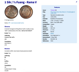 1876 Thailand 1 Sik / ½ Fuang {1-year issue}