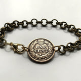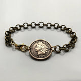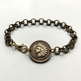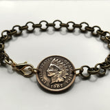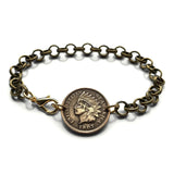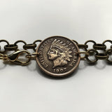 1899 USA United States of America Indian Head Penny One Cent coin rolo link bracelet jewelry native American Liberty Indian headdress New York antique motif b000100