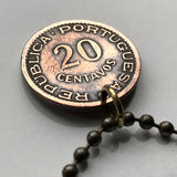 1950 Portuguese Mozambique 20 Cent coin pendant Maputo Matola Nampula Beira Chimoio Tete Pemba Sofala Inhambane Xitsonga Tswa Ronga Makhuwa Sena Chichewa Kiswahili Bantu Kimwani Gorongosa Cabo Delgado Quelimane Xai-Xai Lichinga Zambezia Marrabenta n001177