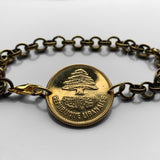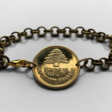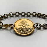 1952 Lebanon Liban 25 Piastres coin rolo link chain bracelet jewelry Lebanese cedar tree Beirut Tripoli Zahlé Sidon Aley Tyre Nabatieh Ra's Bayrut The Levant Jounieh Batroun Baalbek Beqaa Valley Middle East Shami Levantine Arabic b000097