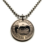 Lebanon Liban coin pendant necklace fashion jewelry Lebanese Phoenician Bireme oared warship ship galley sailing boat maritime Mediterranean Sea Nahr el-Kalb river the Levant cedar tree Tyre Sidon Saira Byblos Beirut Tripoli Jounieh Zahlé Aley Beqaa Valley Levantine Arabic Jeita Anfeh Ampi Amia Arqa Baalbek Batroun Botrys Nabatieh Zgharta Bint Jbeil Bsharri Baakleen Anjar Chekka Cedars of God Mount Lebanon Monastery of Qozhaya Middle East Raouché Centre Ville Badaro Akkar Kadisha Carthage Punic