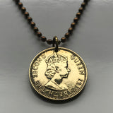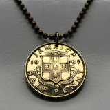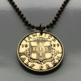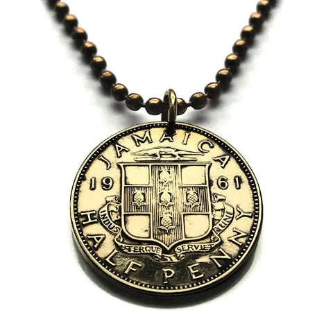1963 British Jamaica 1/2 Penny coin pendant crocodile alligator pineapples Kingston Portmore Spanish Town Montego Bay May Pen Mandeville Old Harbour Savanna-la-Mar Ocho Ríos Jamdung Patois Ackee dub ska Caribbean Marcus Garvey Rastafari Reggae n000296
