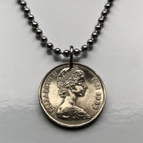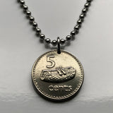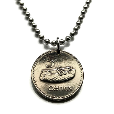 1969 Fiji 5 Cent coin pendant Fijian Lali drum Suva Coral Coast South Pacific island Polynesian scuba diving British Melanesia Viti Levu Lautoka Nadi Labasa Levuka iTaukei people Denarau Bau n003377