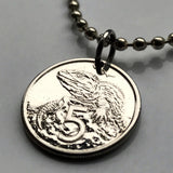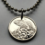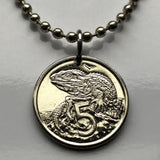 New Zealand 5 Cent coin pendant Tuatara Lizard reptile iguana dragon Auckland Christchurch Wellington Hamilton Maori Hawaiki Polynesia Toi whakairo Austronesia Oceania Zealandia Karori Canterbury South Pacific taonga ariki Tauranga Waikato n000243