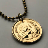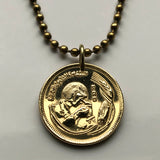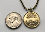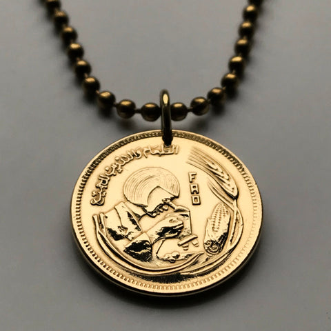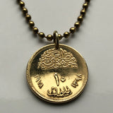 1978 Egypt 10 Milliemes coin pendant Egyptian woman biologist queen pharaoh Akhenaten Cairo Giza pyramids hieroglyphs Aten n002887