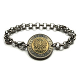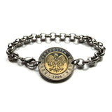 1994 Poland Polska 5 Zlotych stainless steel Rolo Link chain coin bracelet jewelry white Polish eagle Warsaw Krakow Lodz Wrocław Poznan Gdansk Szczecin Bydgoszcz Lublin Katowice Polak Polans Poles Polonia Lechia Slavs Zakopane Oswiecim Kolobrzeg b000133