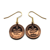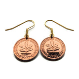 Germany Deutschland 2 Pfennig coin earrings German oak Bavaria Berlin Munich seed garden planting blossom tree plant e000640