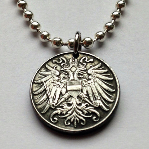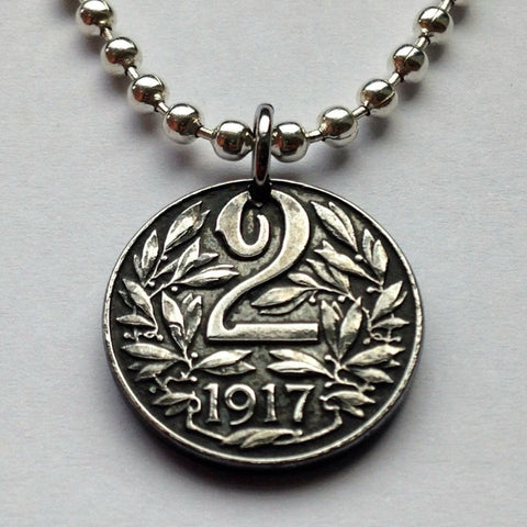 1917 Austria Osterreich 2 Heller coin pendant double headed eagle Vienna Salzburg Habsburg Graz Linz Innsbruck Wien Wels Villach Tyrol Styria Sölden Ischgl Heurigen World War 1 n000276