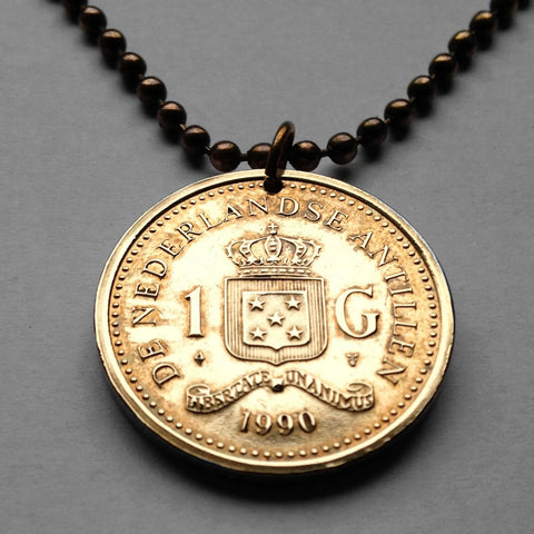 1991 Netherlands Antilles 1 Gulden coin pendant necklace Curacao Aruba Sint Maarten Bonaire Saba Sint Eustatius Willemstad Dutch Caribbean Leeward Lesser Antilles Papiamentu Pais Korsou Cas Abou beach n001754